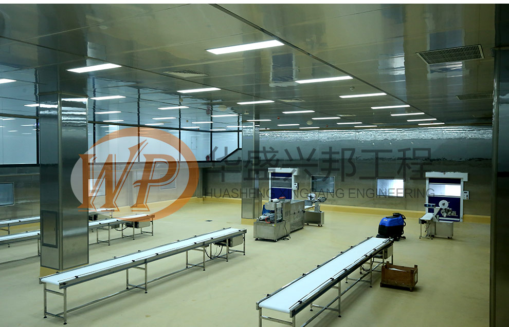 項目介紹:該中央廚房生產車間是雙面不銹鋼中控玻鎂板,地面為聚氨酯砂漿地坪