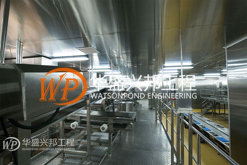 華盛興邦承接廣元至旺食品有限公司廠房設計、廠房裝修工程。該車間主要生產肉制品,是一個大型的現代化肉制品加工工廠。目前車間裝修已經竣工驗收,設備調試完成即將投入生產。