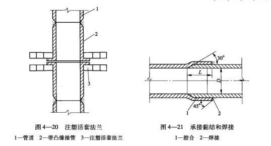 (3)PVC,ABS,PP管道的黏結、焊接和黏結后再焊接的具體形式如圖4—16~圖4—21所示。