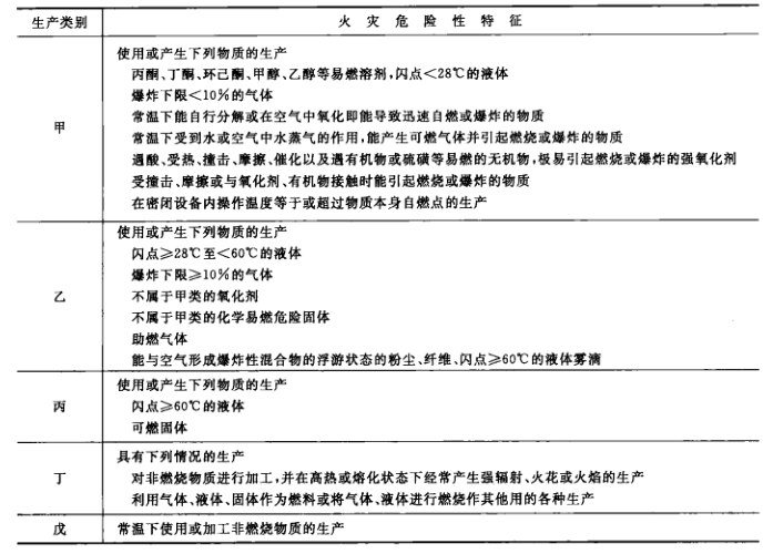 ?生產(chǎn)的火災(zāi)危險(xiǎn)分類根據(jù)我國建筑設(shè)計(jì)防火規(guī)范等的規(guī)定,生產(chǎn)的火災(zāi)危險(xiǎn)分為甲、乙、丙、丁、戊五大類,見圖1