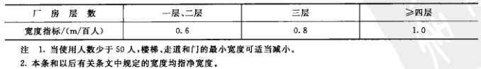 4、制藥廠廠房每層的疏散樓梯、走道、門的各自總寬度應按圖2的規(guī)定計算。當各層人數不相等時,其樓梯總寬度應分層計算,下層樓梯總寬度按其上層人數最多的一層人數計算,但樓梯最小寬度不宜小于1.1m。底層外門的總寬度應按該層或該層以上人數最多的一層人數計算,但疏散門的最小寬度不宜小于0.9m;疏散走道寬度不宜小于1.4m。