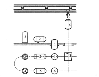 5、制藥廠在布置設備時還要考慮設備安裝、檢修、拆卸以及運送物料所需的起重運輸設備。若不設永久性起重運輸設備,則要考慮安裝臨時起重設備所需的空間及預埋吊鉤,以便懸掛起重葫蘆。若設置永久性起重運輸設備,則不僅要考慮設備本身的高度,而且要確保設備的起重運輸高度能大于運輸線上最高設備的高度,如圖3所示。