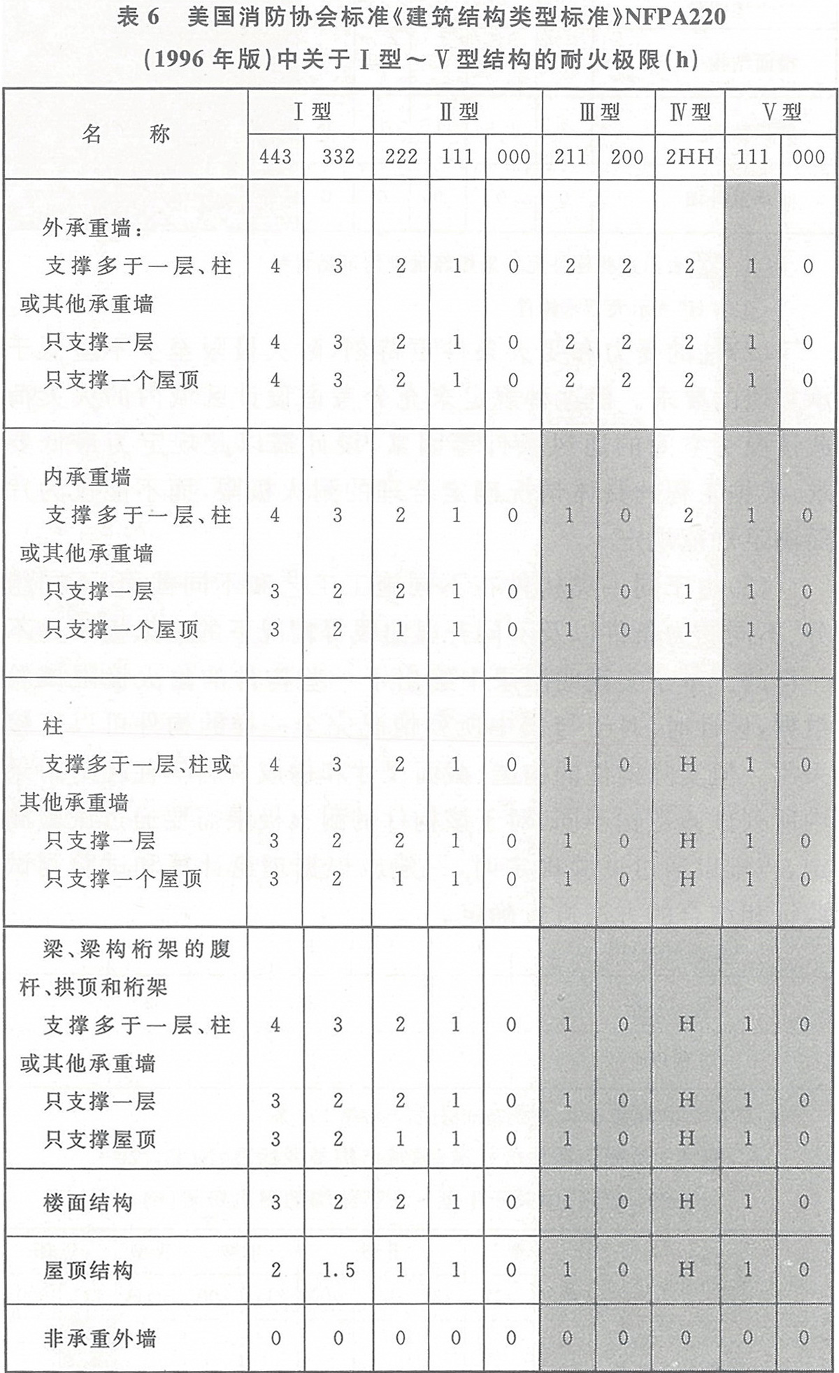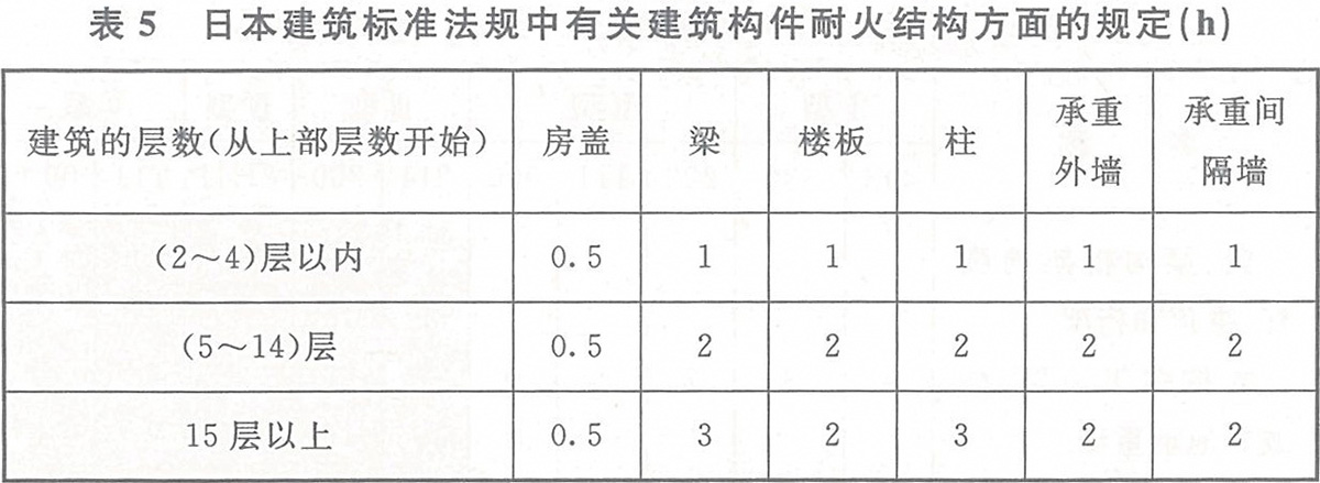 (1) 本規(guī)范第3.2.1條表3.2.1中有關建筑構件的燃燒性能和耐火極限的確定,參考了蘇聯(lián)、日本、美國等國建筑規(guī)范和相關消防標準的規(guī)定,詳見表4~表6。